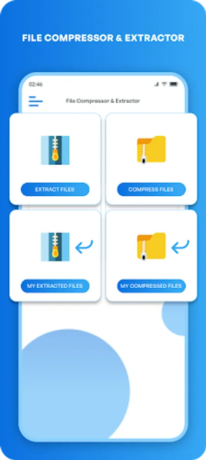 Main screen - Extract Files - Compress files - My files (gallery only)