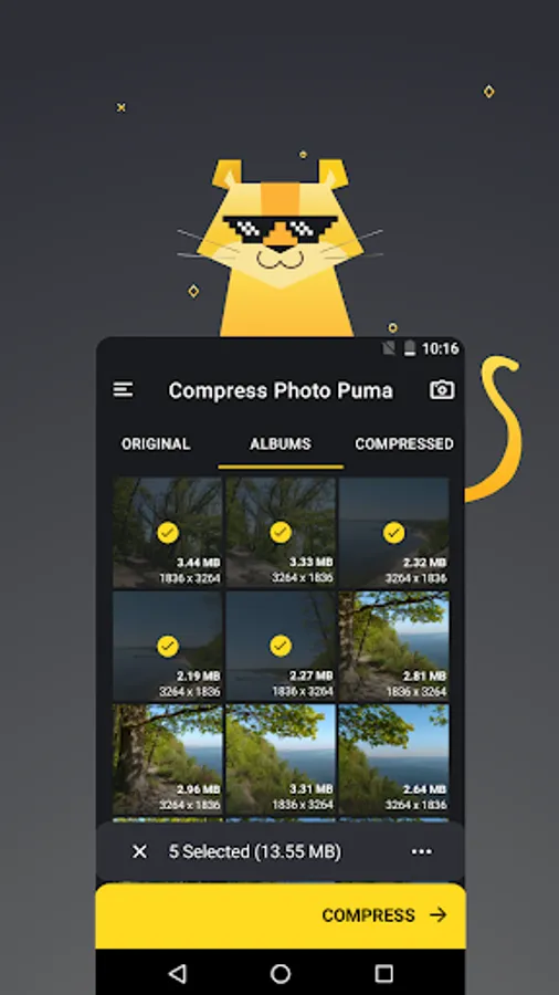Puma lets you make photos smaller without a visible loss in quality. And you can do this in two ways: