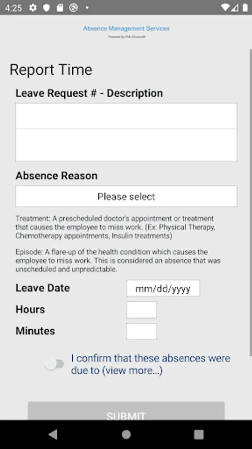 • Downloading forms and documents associated with your leave