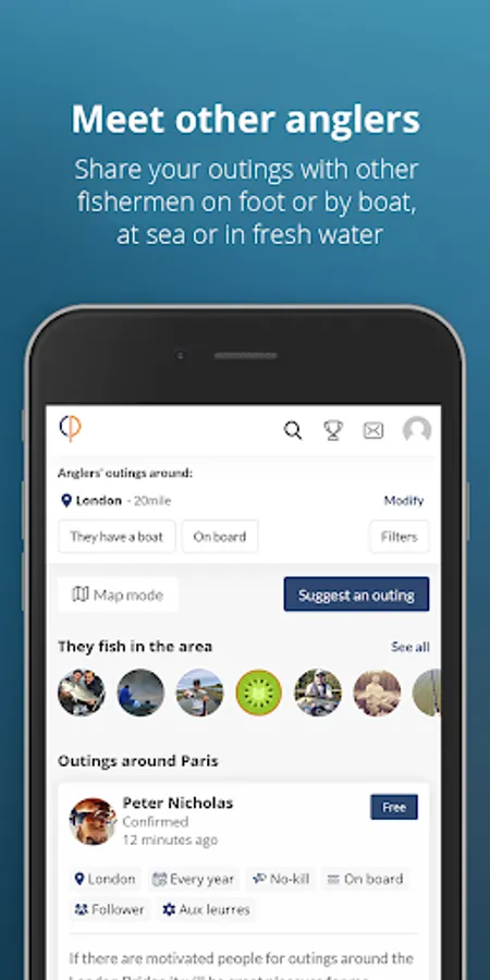Come share your passion with other anglers in your area. You want to meet other fishermen: search or suggest outings.