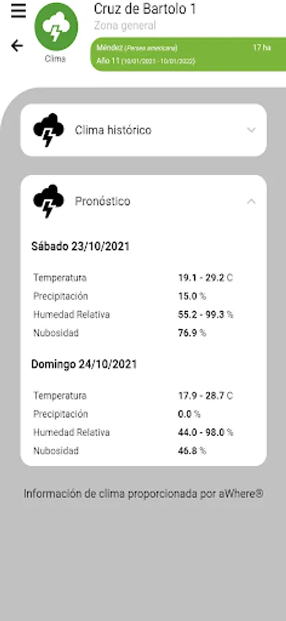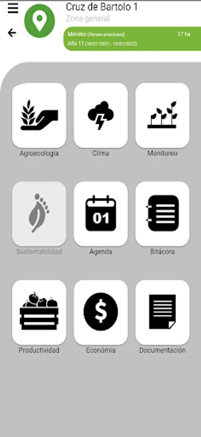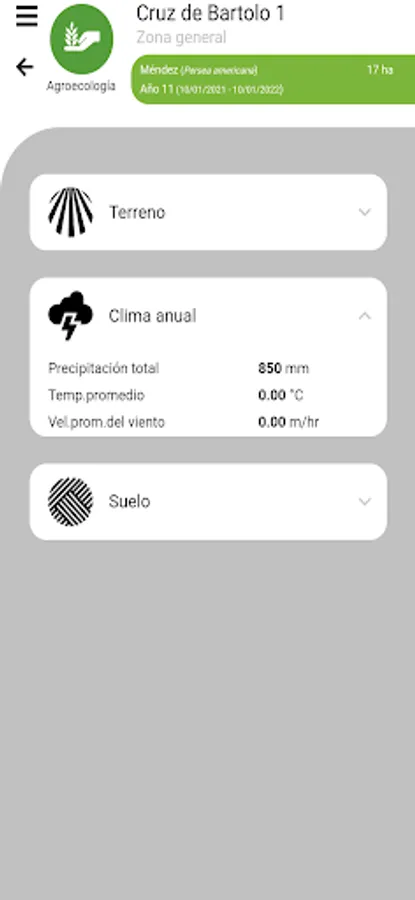 Aplicación móvil para equipos portátiles que permite visualizar toda la información relacionada con cualquier predio y ciclo agrícola en particular, como el perfil agroecológico del predio, el clima histórico, presente y pronóstico, su imagenología, agenda, bitácora, presupuesto, flujo real, etc.