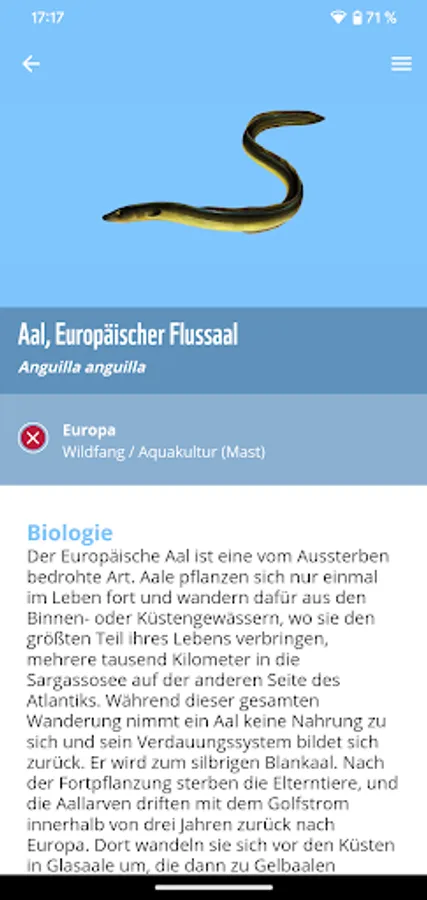 - Simply click on a selected fish to find out more about the biology, stock situation, effects on the ecosystem and management