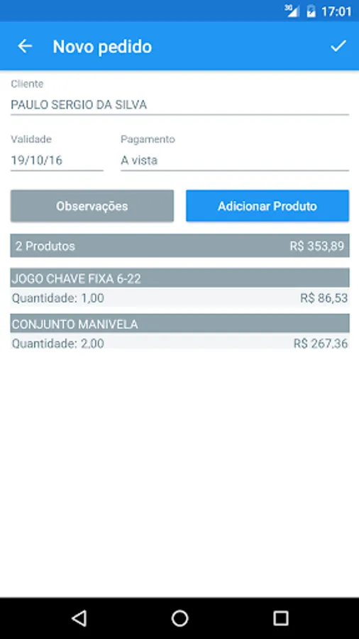 Application integrated with the CompuFour Clipp Store for the registration of sales orders.