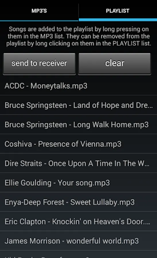 * Sending MP3 files directly to the receiver (must support DLNA)