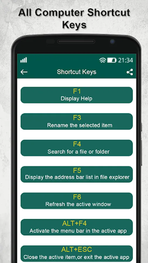 Knowing Computer Shortcut Keys is a definite advantage as it helps in learning keyword operation in an easier manner and in a more organized method. The app covers both Computer Shortcut Keys & Software Shortcut Keys in its information scope. By using the utility Computer Keyboard shortcuts app, you will get to know at least 1000 short keys available on a computer keyboard that will help you to work with an easier approach and faster speed.