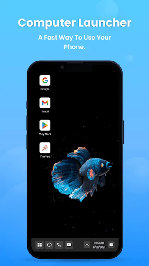 Create Your Desktop on Android With Computer Launcher Aquarium App, enjoy the convenience of a desktop-style interface right on your Android device. Experience the familiarity of a PC-style home screen, complete with a Windows-style launcher and theme.