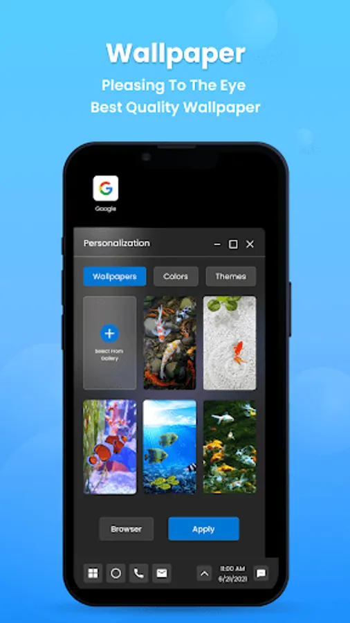 Computer Launcher Aquarium app has 200+ themes and wallpapers that give your smartphone an elegant look with a great UI.