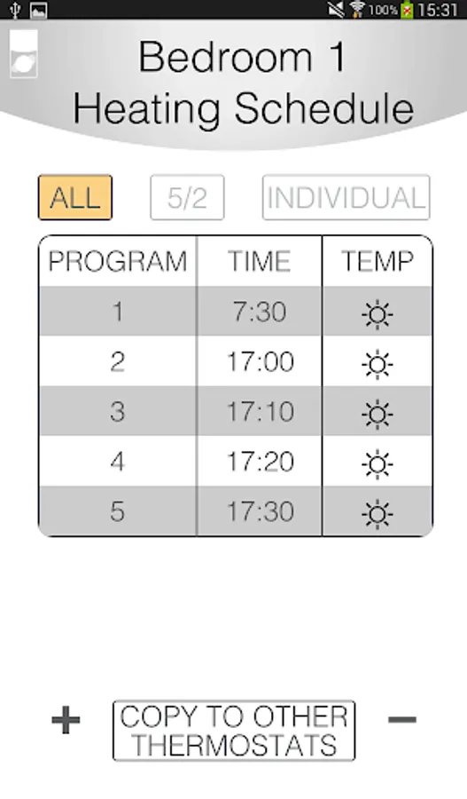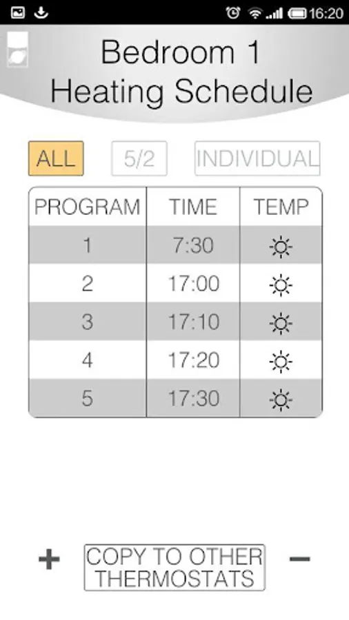 This remote application helps user to setup temperature, schedule in individual or grouped thermostats. With simple steps, user can setup Party or Vacation mode on multiple groups.