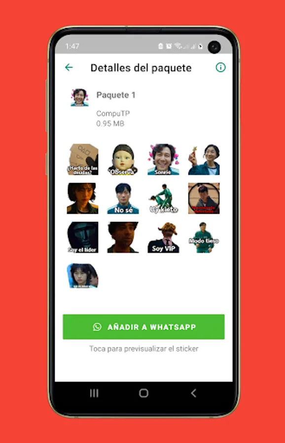The Squid Game Stickers 🦑 is a collection of more than 80 Stickers of the most popular Netflix series in Mexico. This series is also known as Squid Game in English, it premiered on September 17, 2021.