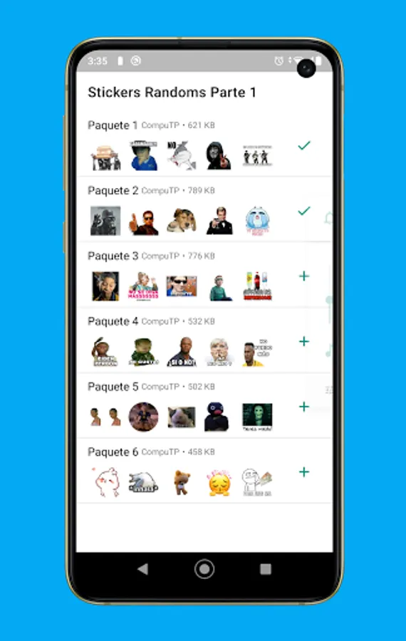 Stickers Randoms Part 1 is the best application you can find, the stickers will go directly to your favorites, practically essential when chatting since the catalog it has helps you send stickers for anything you have to say.