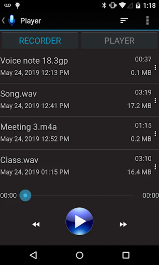 ★ Make long recordings, select a compressed format to record: long meetings, classes, lectures, and concerts.