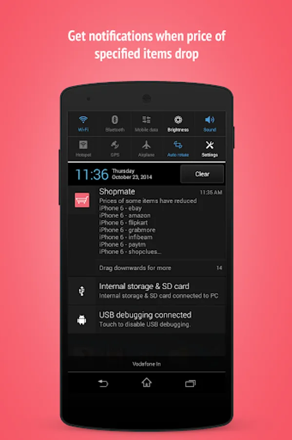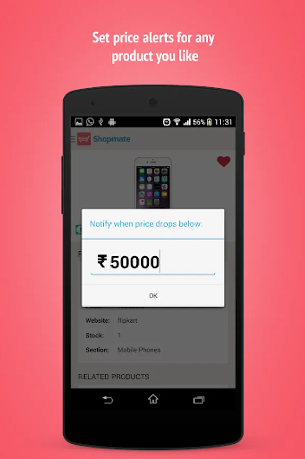 Get notifications when price drops below a certain value specified by you. The best way to keep track of prices of your favorite goodies without even opening any app. Just set the price alert once for any product and leave the rest to shopmate.