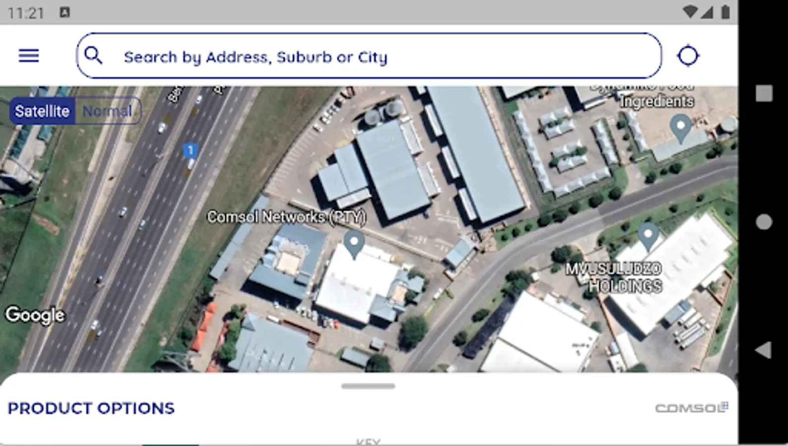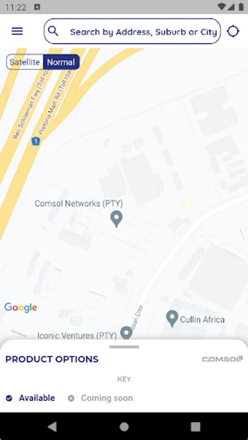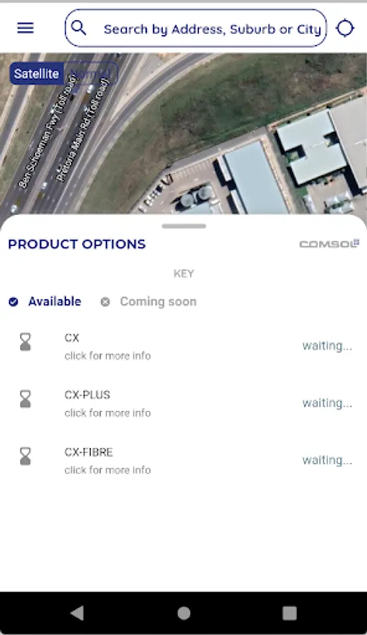 Comsol Coverage App will assist you to check real-time whether any of Comsol’s services are available at the address or coordinates that you selected on the map in the App. A service request can then be submitted via the App to request a service or additional information.
