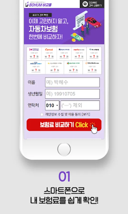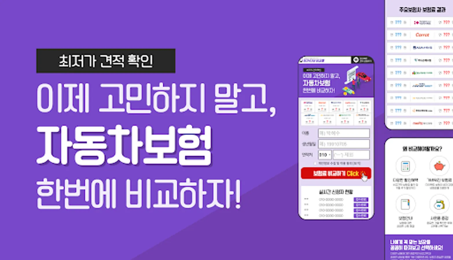 Auto insurance real-time calculator of major insurance companies You can check the auto insurance of major insurance companies in real time in the insurance comparison mall app and calculate the insurance premium that is right for you. It will save you the trouble of searching everywhere and help you choose and sign up for the car insurance that suits you with one mobile app.