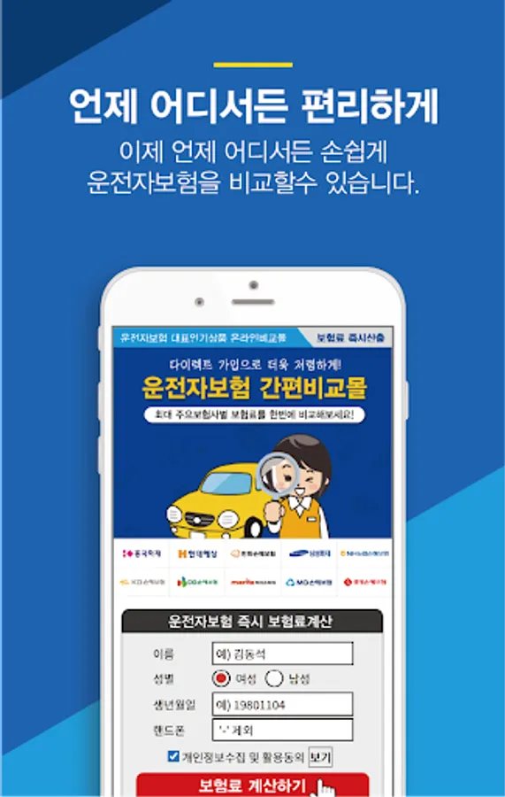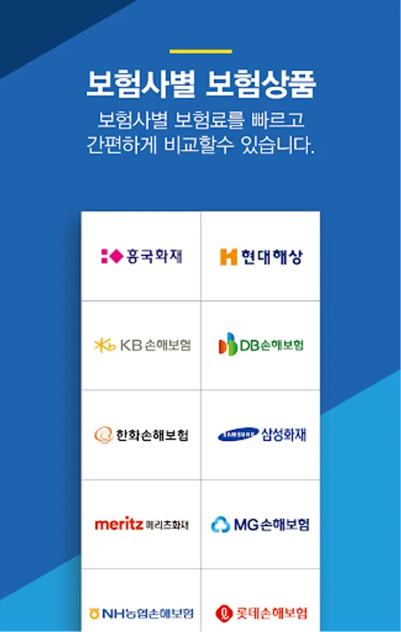 For customers who want to find information and products about driver insurance, such as driver insurance amount, driver insurance free gift, driver insurance own vehicle, driver insurance subscription period, driver insurance maturity refund, driver insurance pure guarantee type, driver insurance Internet subscription, driver insurance renewal, etc. All information about insurance is contained in the driver's insurance app. You can check major driver insurance products of domestic insurance companies at a glance and receive all kinds of benefits and gifts.