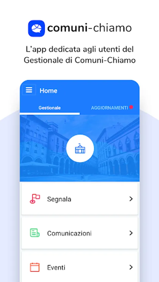 Comuni-Chiamo is a free app, available for employees of municipalities and companies that have a Comuni-Chiamo license.