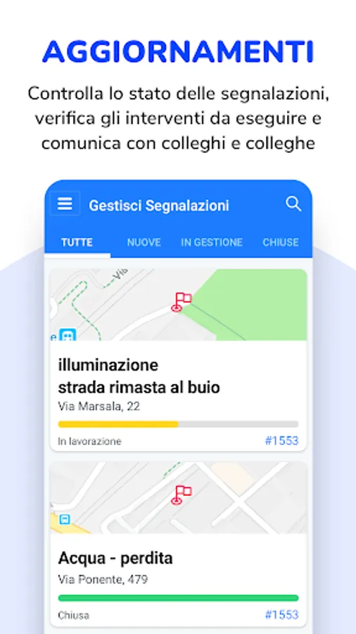 With Comuni-Chiamo, Municipalities and Companies manage reports in a simple and effective way, reducing bureaucracy and work times.