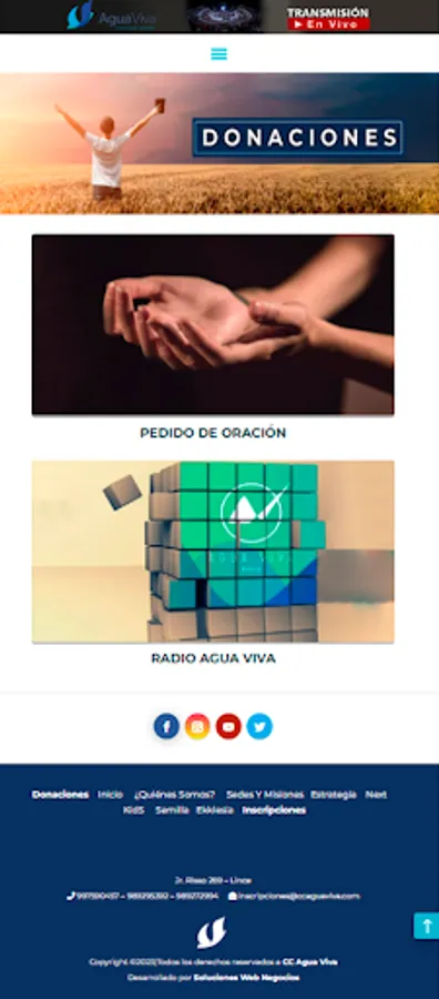 The growth of the church continued and we had to take a step of faith and rent a theater to start having our Sunday services. From that moment we began to multiply rapidly, currently having meetings on Saturdays and Sundays in 8 locations in the capital: Risso, Lima Norte, Lima Sur, San Juan de Miraflores, San Juan de Lurigancho, Chosica and in the Agua Viva Convention Center (Former Amauta Coliseum).