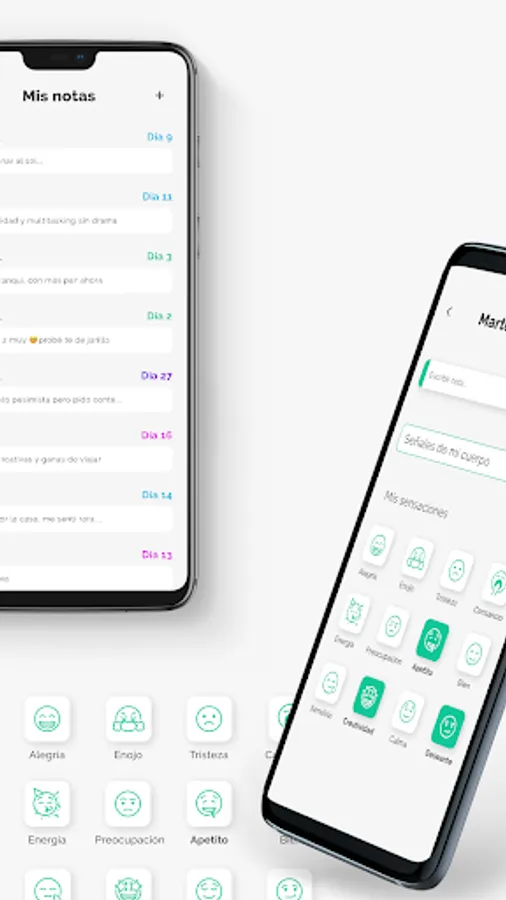 * Track key symptoms for health and moods.