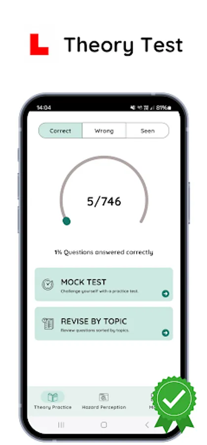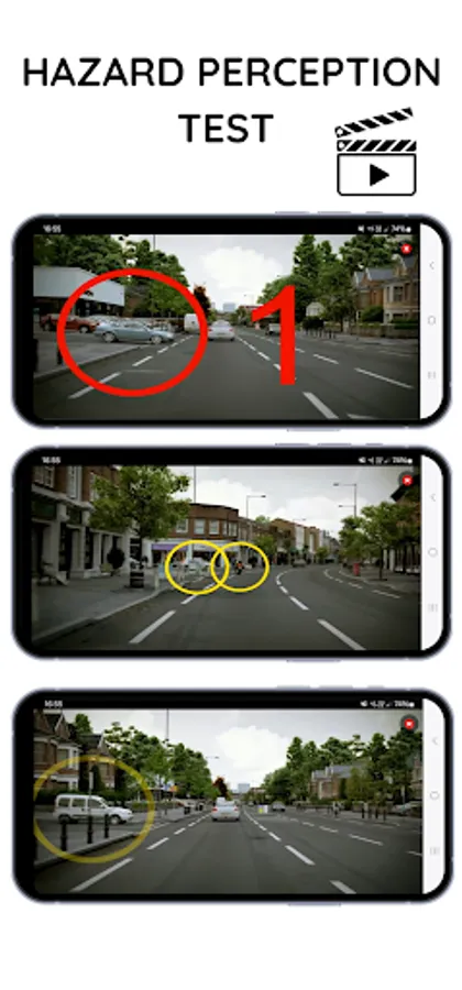 Sharpen your skills with interactive hazard perception clips, just like the real test. Get realistic scenarios and instant feedback. Our app includes a complete set of hazard videos (including new CGI clips for 2025) with a scoring system and cheat detectionâso youâre fully prepared. Practice spotting developing hazards and improve your reaction time