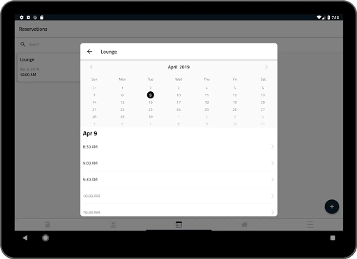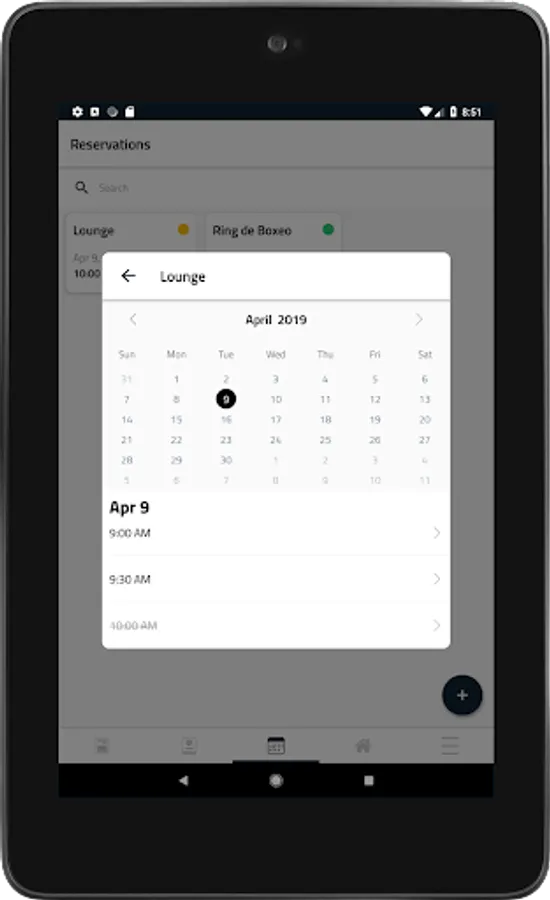 Quick and easily reserve shared areas con the organization. Check all available schedules for each day in nice calendar.