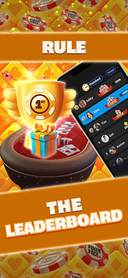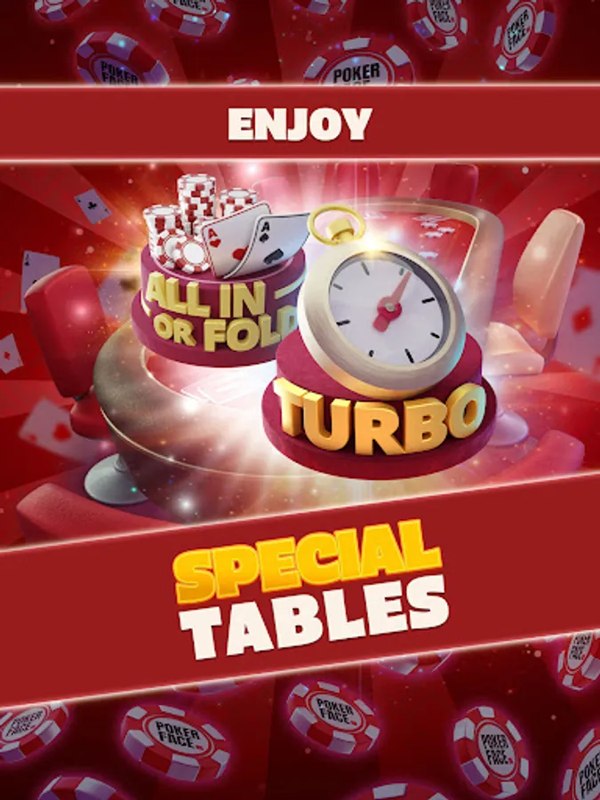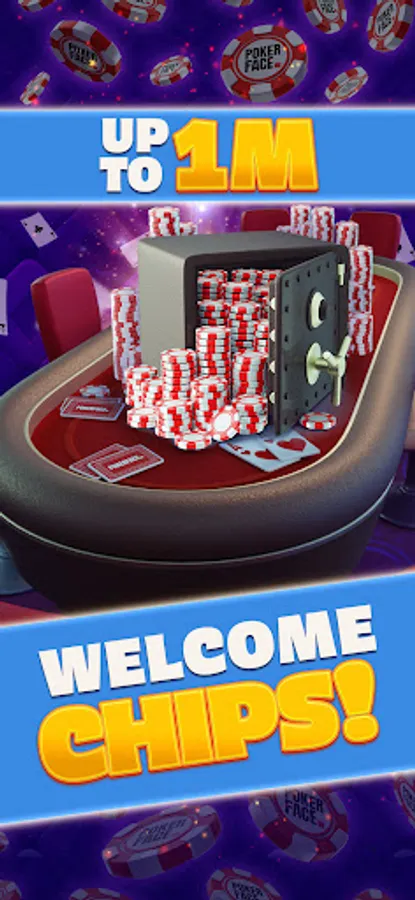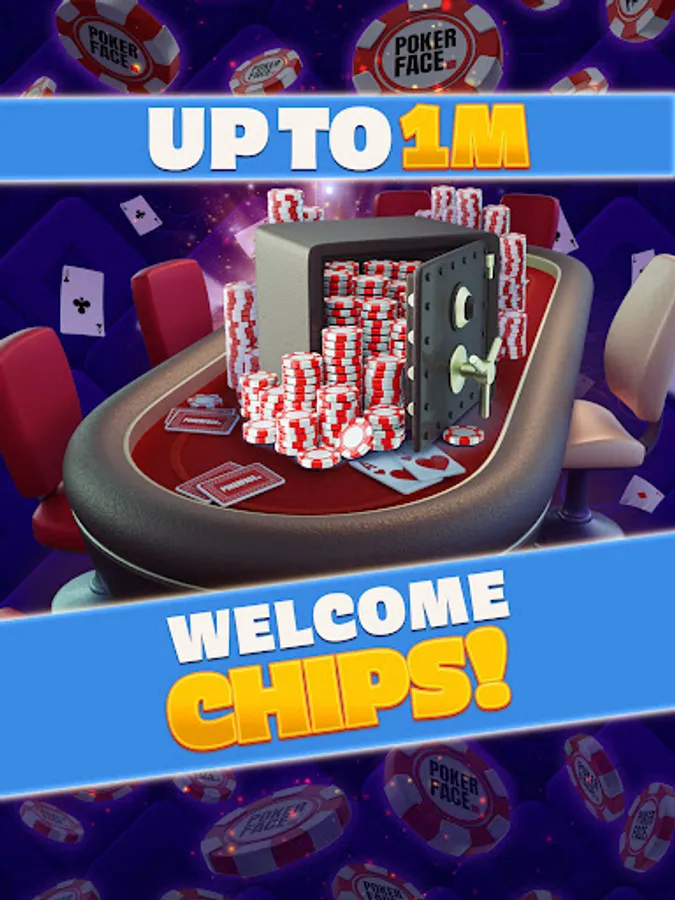 Download Pokerface now! Invite your friends to play, and get a welcome bonus of up to 3,000,000 chips.