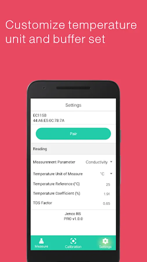 Designed with the everyday users in mind, the Conductivity Basic app, when paired with a Jenco Bluetooth conductivity tester model EC115B, is the simplest way to accurately measure conductivity, salinity, TDS and temperature readings.