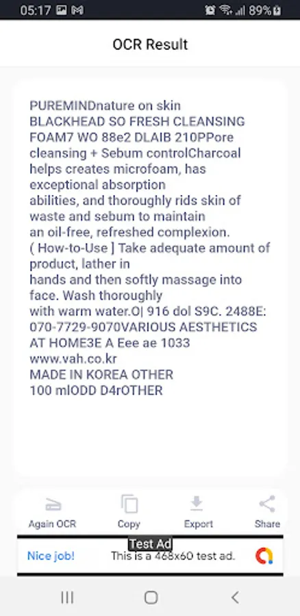 • Permanently save your scanned/extracted text in your mobile phone memory for future use.