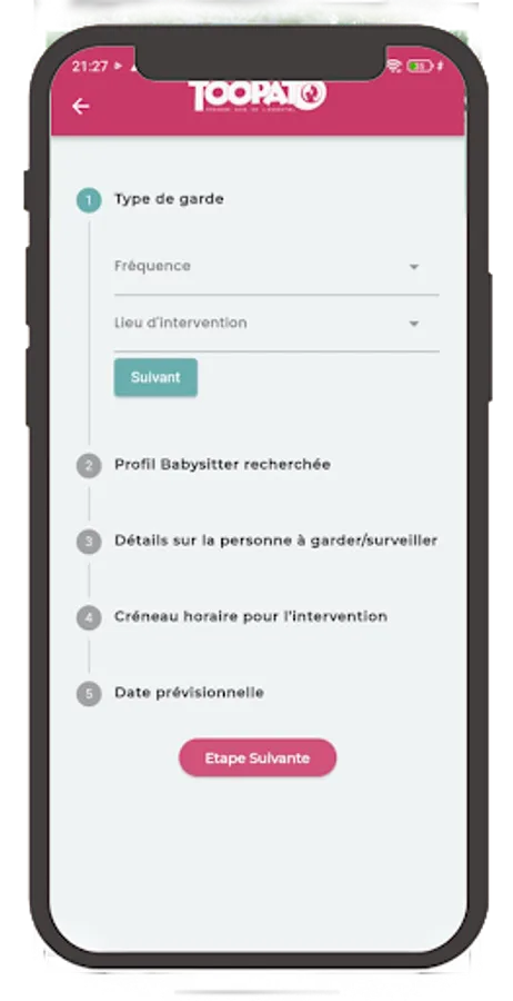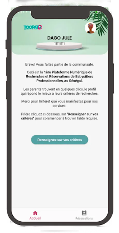 This project aims to set up in Senegal, the first platform for booking babysitters under the name TooPatoo. This platform will be intended for parents in the management and custody of their children in case of unavailability. TooPatoo is the initiative of a mother who found herself faced with the heavy burden of educating her child on her own; who had to postpone professional deadlines; give up a social life for lack of a trustworthy person to entrust their baby to.
