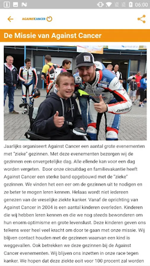 Annually Against Cancer hosts a number of major events with "sick" families. With these events, we give families an unforgettable day. All woes may one day be forgotten. We hope that this disease is 100 percent will ever be overcome.