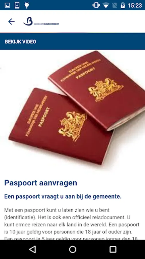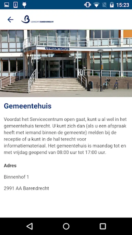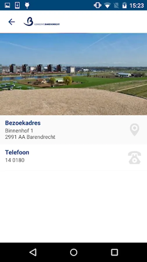 The municipality of Barendrecht App. This functional app includes, inter alia, make appointments online, reporting vandalism and public space, information about work in progress.