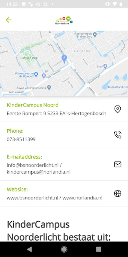 KinderCampus Noorderlicht is now still located in two buildings in the north of 's-Hertogenbosch. In and near the school there are also between-school care (leftovers), a daycare center and after-school care.