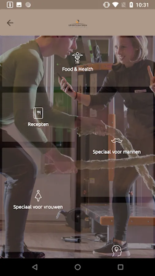 In addition, you can use this app also good for your own training. So you can use our comprehensive database exercises and then also follow fitness programs. Want to know how you make stands for, then do the fitness test. And do you want to do something about, do not forget to read about nutrition and fitness. Tips