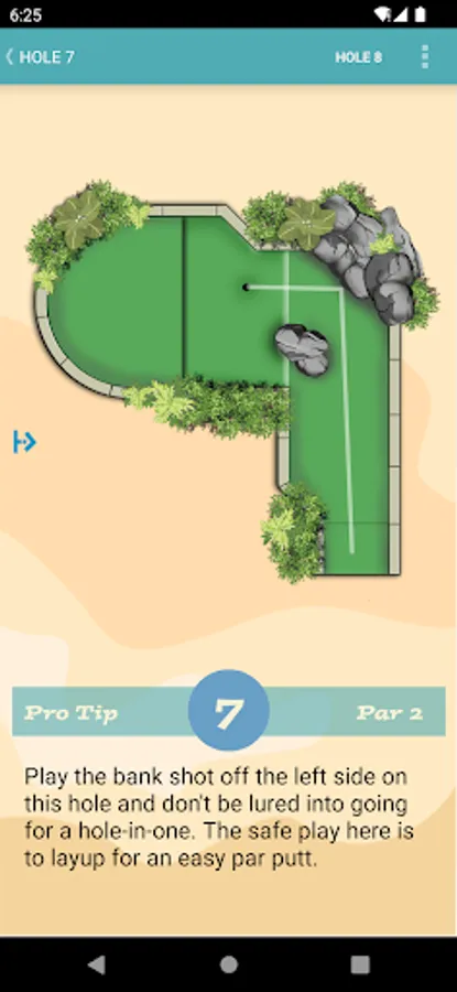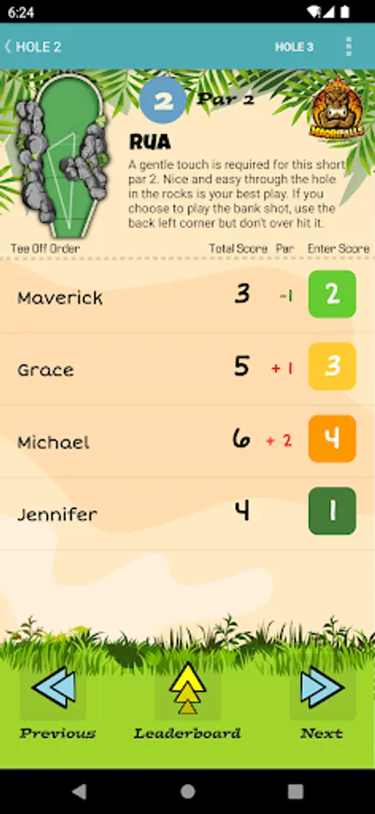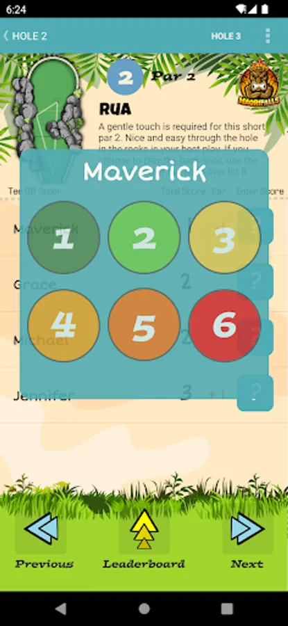 A mini golf scoring app for the Maori Adventure Falls golf course at Crazy Pinz, Fort Wayne, Indiana, US. Use the app to record your own score and that of your friends as you navigate around the course. There are images of each hole and animations for the best route to take to use the slopes to your advantage. Pro tips will also help you make the wise play and keep away from the traps, bunkers, ditches and other dangers. The app can keep a record of each round of golf you have played. Register an account with us.