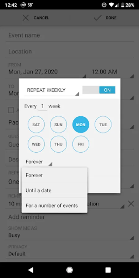 Our Monthly calendar view is unique because you can scroll vertically, indefinitely through months and see how busy your schedule is. Our calendar is also completely free, and completely ad free! Very rare to find out there. This calendar app additionally features recurring events, appointment reminders, and color coded appointments/events.