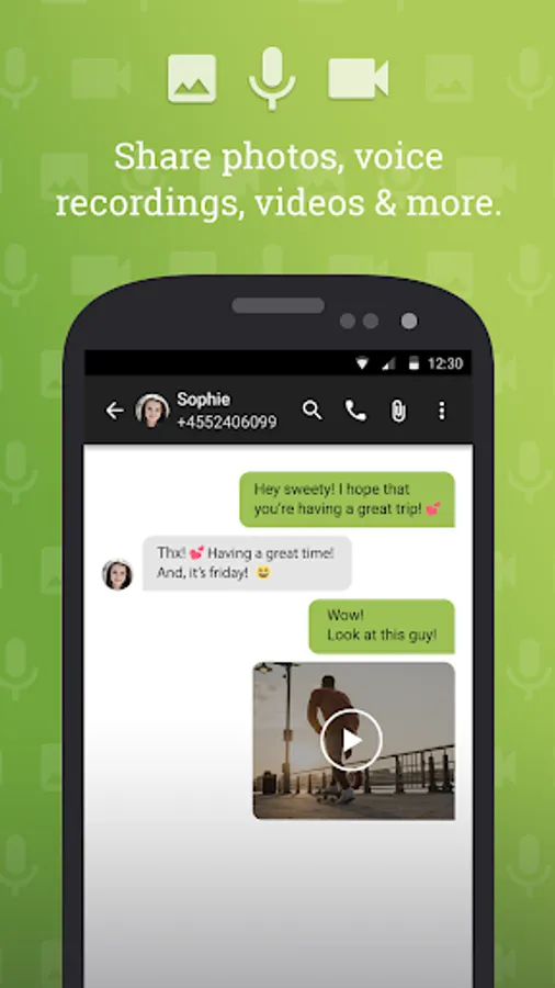 ✅ Multi-format messaging: Send SMS, pictures, and videos instantly.