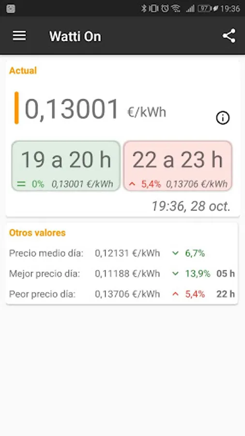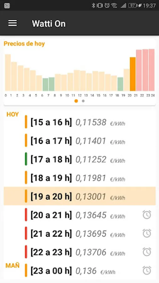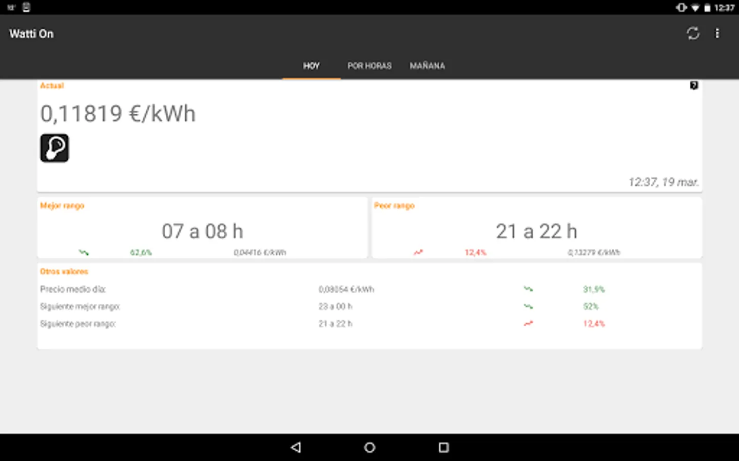 Watti On is the NOT official application that will allow you to know at all times what is the price of light.