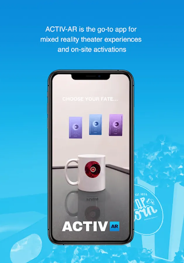 ACTIV-AR is the go-to app for mixed reality theater experiences and on-site activations. Instead of using ticket or theater branded software, you can download ACTIV-AR to be used for all theater-based AR activations without being affiliated with any specific theater or ticket seller.