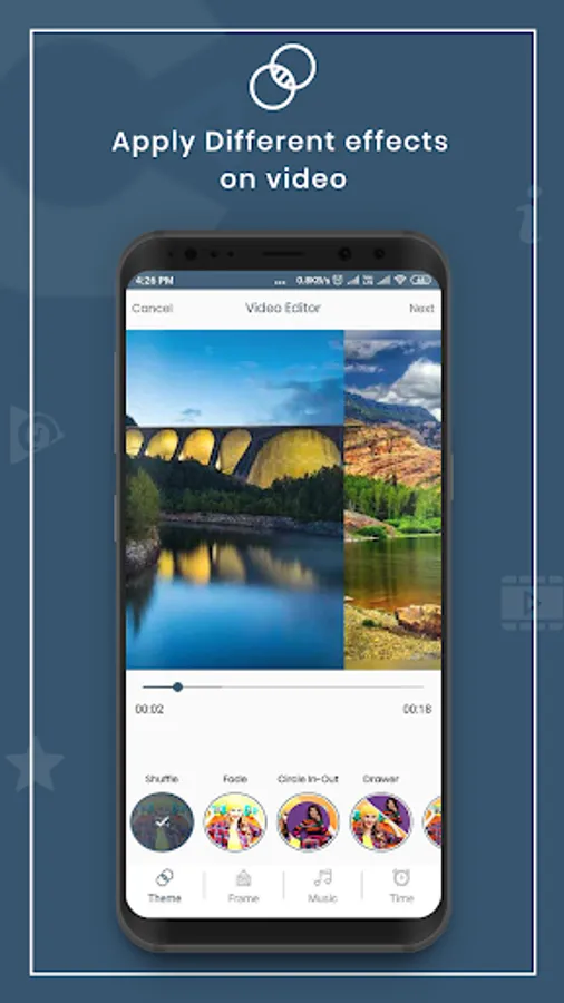 Music: CI Video maker - photo slideshow offers default Song. Moreover, it fetches audio files from gallery, so you can choose best for creative video.