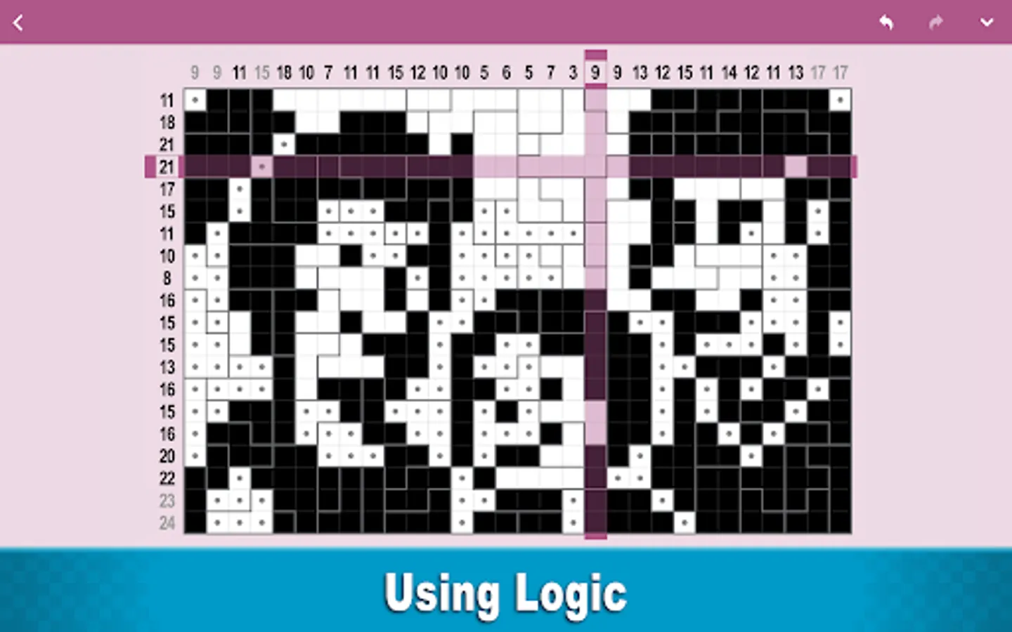 Paint squares and fill regions as you solve the puzzle and discover a beautiful pixel-art picture! Each puzzle consists of a blank grid, divided into various regions, with clues to the left of every row and at the top of every column. The object is to reveal a hidden picture by painting squares and filling blocks according to the rules.