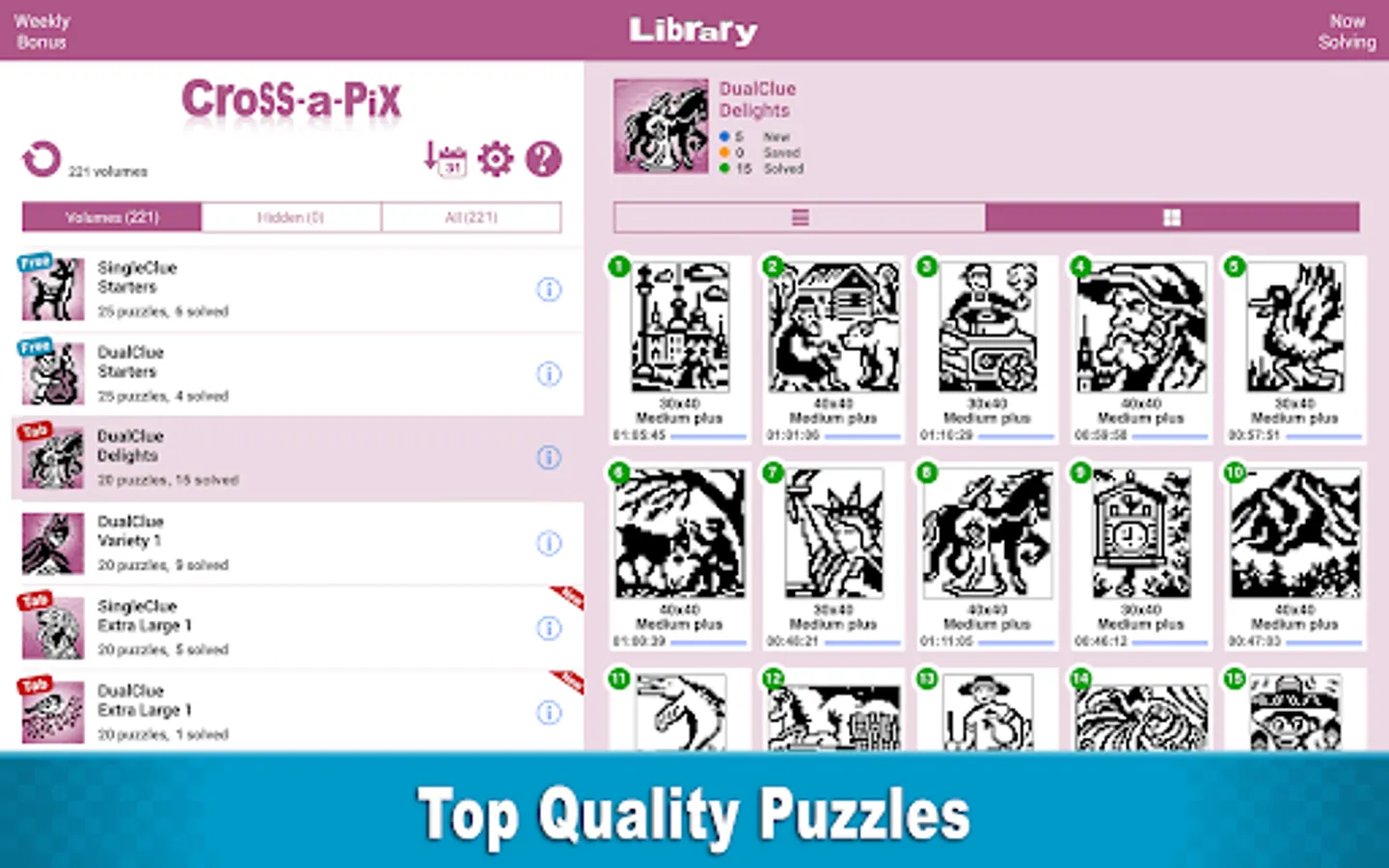 For more fun, Cross-a-Pix includes a Weekly Bonus section providing an extra free puzzle each week.