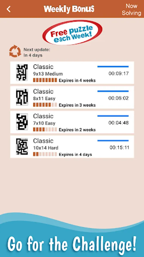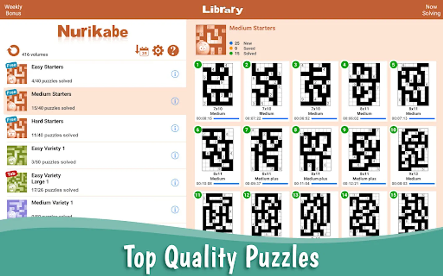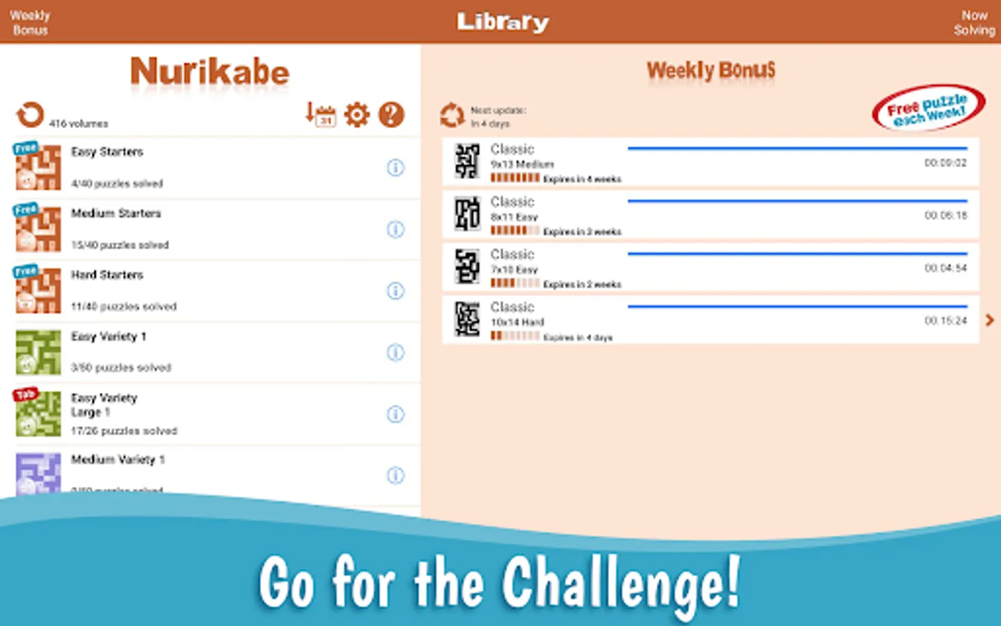 For more fun, Conceptis Nurikabe includes a Weekly Bonus section providing an extra free puzzle each week.