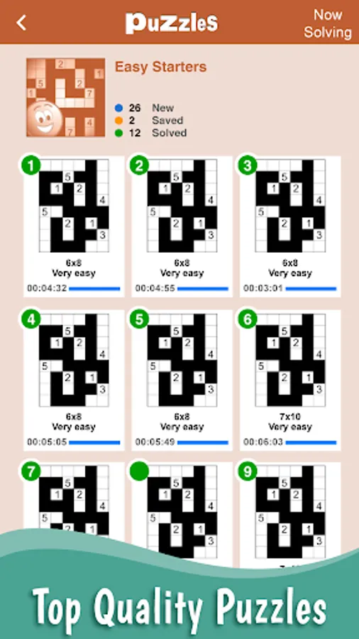 • Graphic previews showing puzzles progress as they are being solved