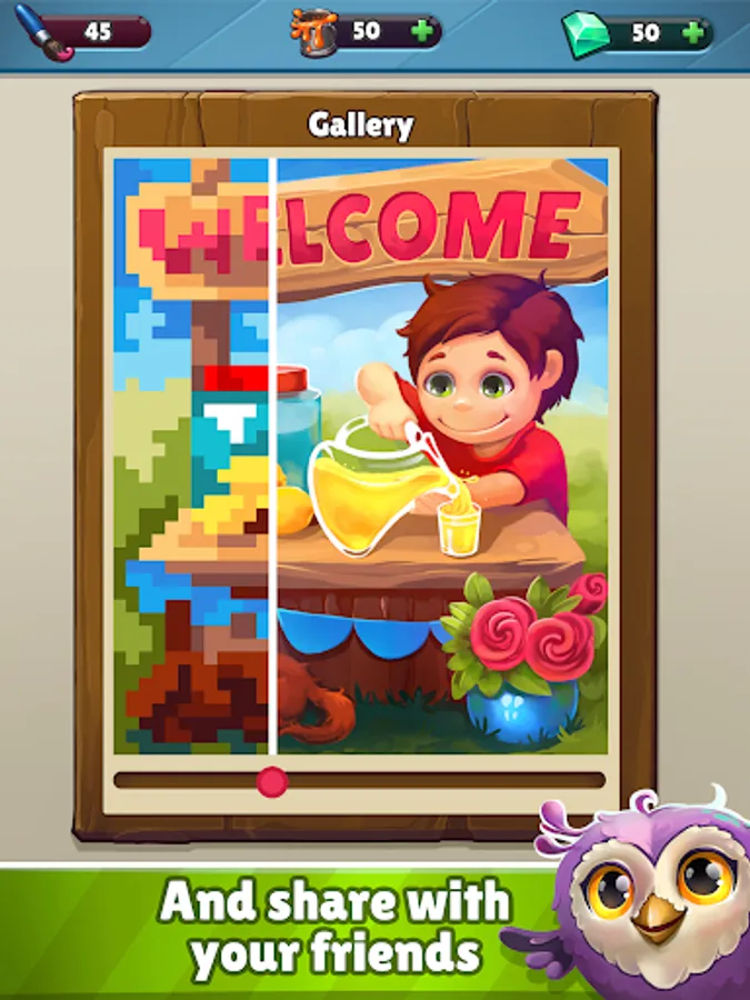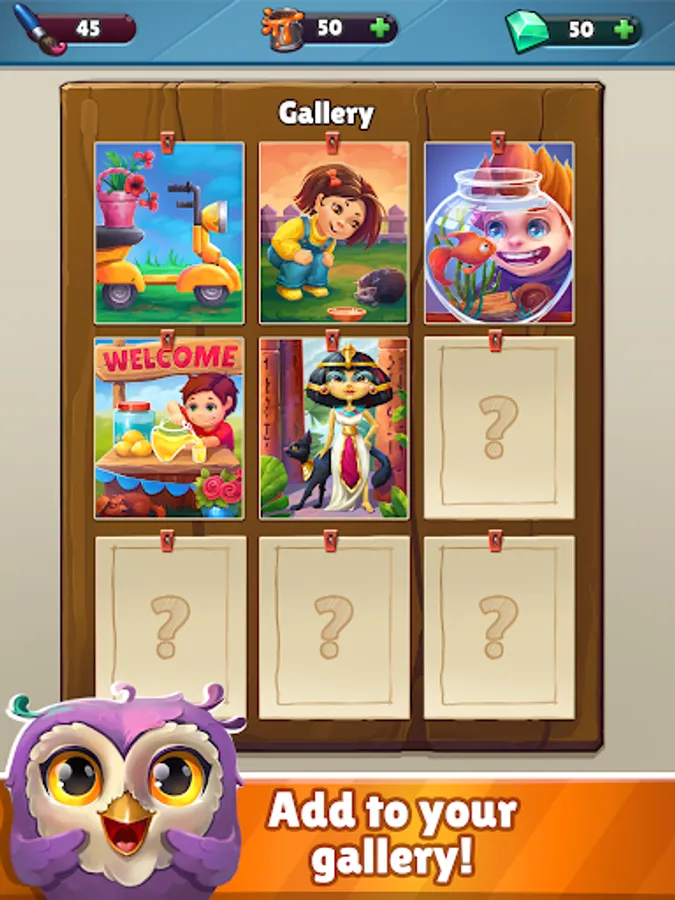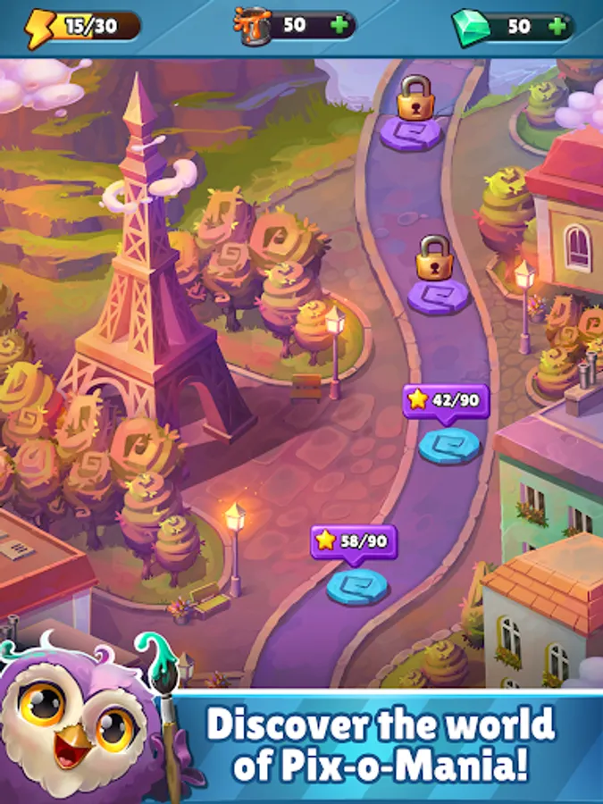 Join Anna-the-Owl in her picture-painting adventure through the exciting world of Pix-o-Mania! Solve pixel-art puzzles level after level to uncover the big pictures and watch them morph into beautiful hi-res masterpieces as you travel across exotic countries, scenes and landscapes.