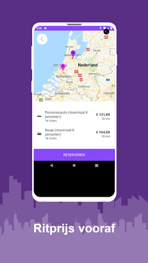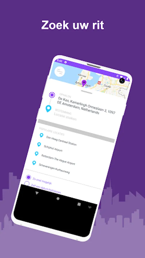 The CAB4SURE app is an app for taxi rides throughout the Netherlands. You can immediately calculate your route and you immediately know what the trip will cost. You can also use the CAB4SURE app for airport transport at home and abroad. Book via the app with an attractive rate discount.