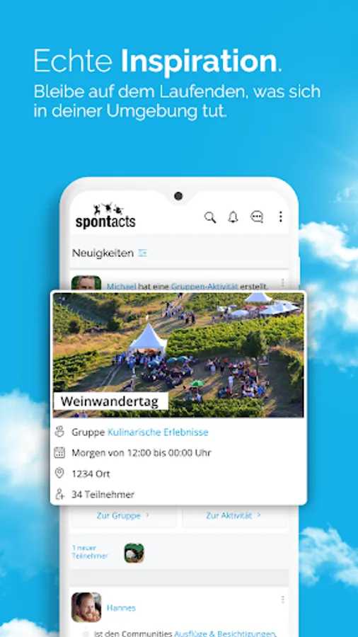 Find inspiration for your free time with Spontacts and meet new people at events and activities near you!