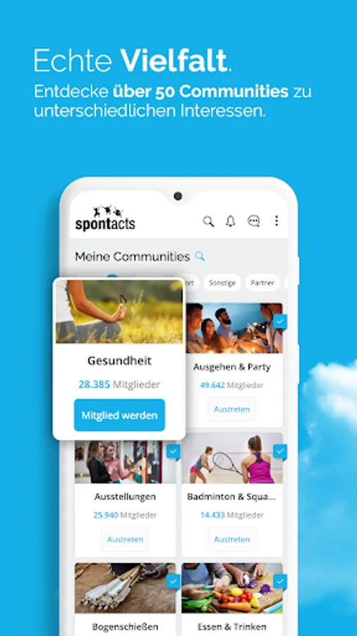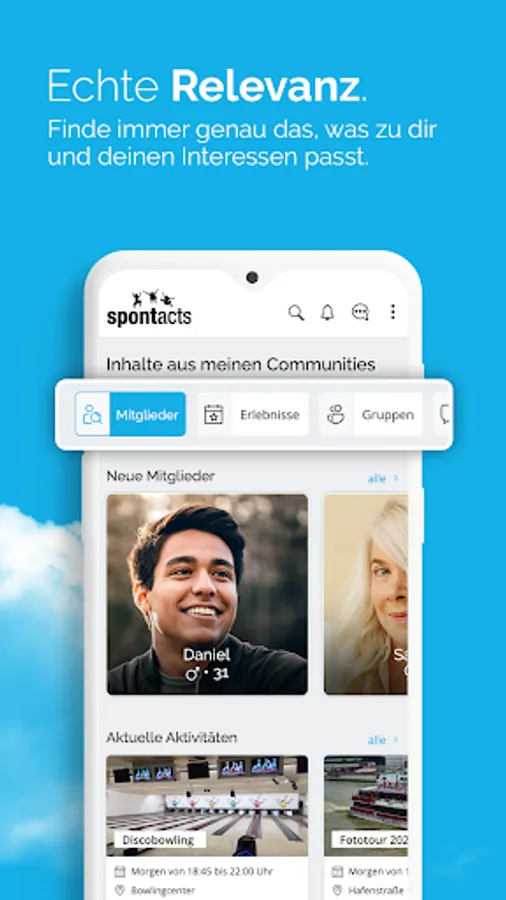 You can expect joint bike tours 🚴♀, hikes 🥾, game evenings 🎲, exciting excursions 🚅, visits to the cinema 🎟 and many other activities. Make more of your free time and discover new hobbies for yourself. Take part in activities & events and take the chance to meet new people and find new friends and hobbies. Benefit from the real togetherness in the Spontacts Community!