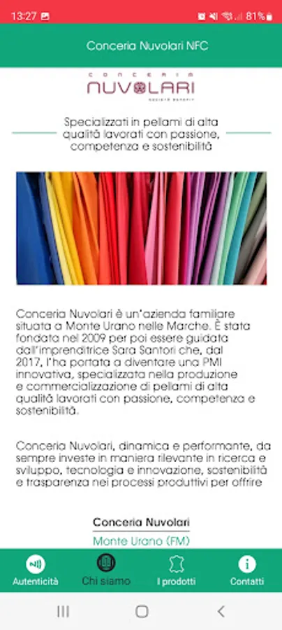 The Conceria Nuvolari NFC app allows you to verify the authenticity of Conceria Nuvolari products. The Authentic TAG is placed on the leather lot label.