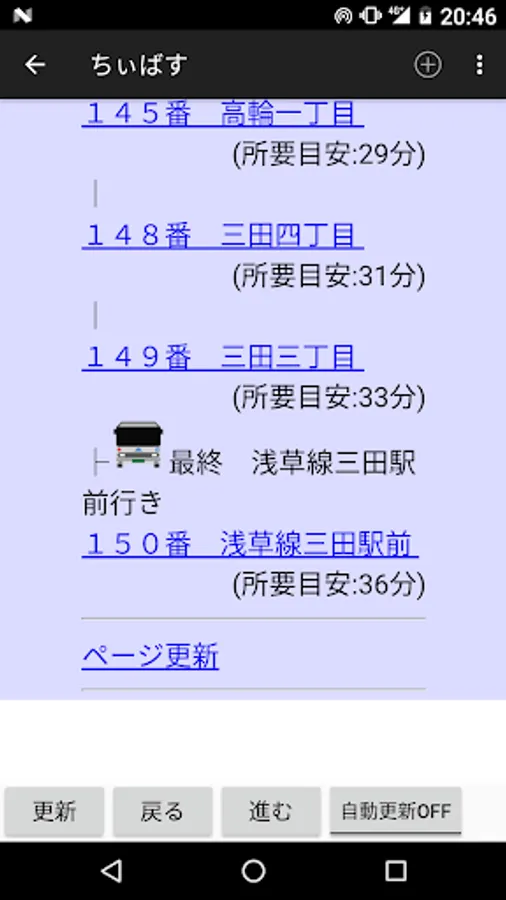 運行状況を表示するときは、30秒毎に自動更新がかかるので表示したままにしておけば今バスがどこにいるのかわかります