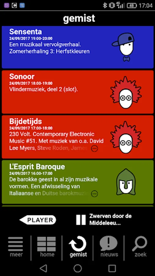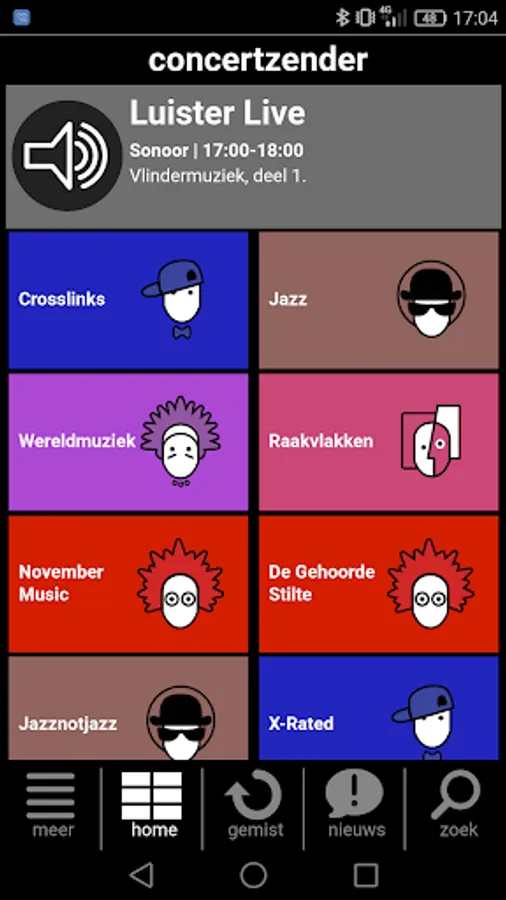 The Concertzender stands for exceptional, serious music. All pieces are broadcast as a whole (no highlights or excerpts) and our programmes are never interrupted by commercials. The announcements are kept brief, so that as much quality music as possible can be played. The broadcasts consist of a wide variety of surprising programmes, 24 hours a day, using a weekly format.